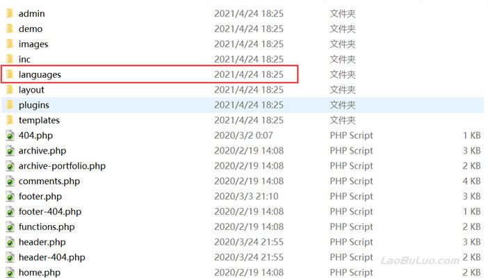 这里老蒋找到的这个WordPress主题是有语言包的,当然是没有中文,这里我们就要快速用软件汉化。