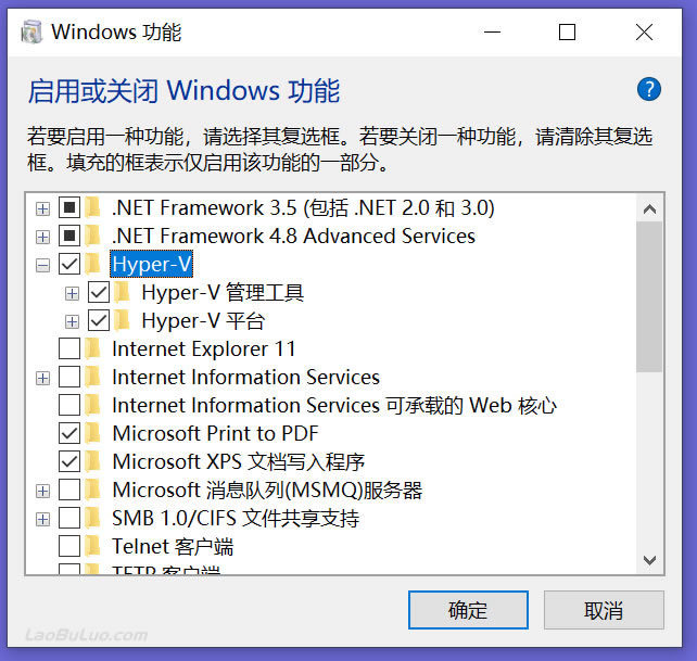 然后看到我们在软件中有包括Hyper-V,我们勾选后正常安装即可。