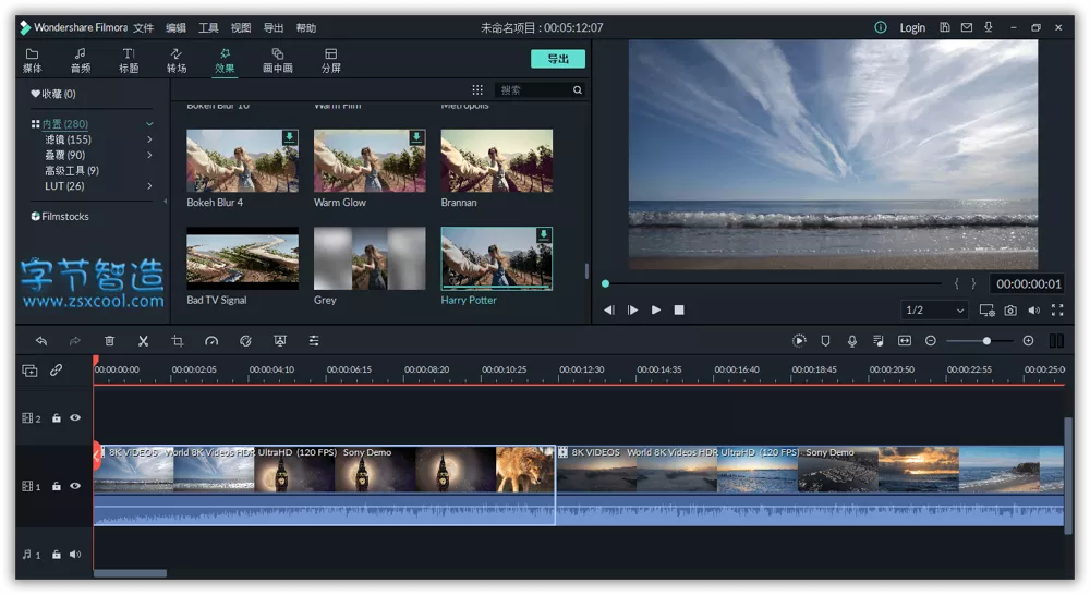 万兴神剪手——风靡全球的国产视频剪辑软件,英文名Filmora,集视频剪辑、格式转换、屏幕录制等多种功能为一体,界面设计精美,操作简单,即使是小白用户,无需经过专业培训,就可以直接使用。万兴神剪手提供了很多特效模板,创作中可以直接套用,其中包括上千种好莱坞大片特效、300+种字幕、400+种叠加特效等素材。