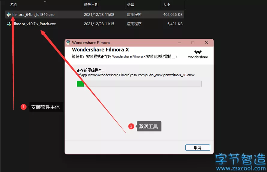 - 安装Wondershare Filmora主程序(注意选择繁体中文安装);