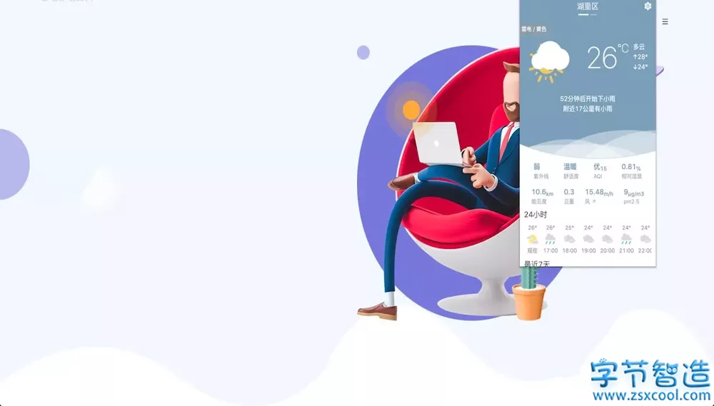 Weather 是一款浏览器端开源的天气预报小工具,该插件可以让你在浏览网页的同时,随时随地查看当天的天气。支持中国省市区县实时天气、天气预报的浏览器插件,它的数据来源于权威的中国天气网,不仅可以显示实时天气,还能显示未来一段时间的天气预报、风力、湿度、空气质量以及生活指数,还可以查询未来24小时、一周的天气预报,以及实时的风力、湿度、空气质量、降水等详细内容。