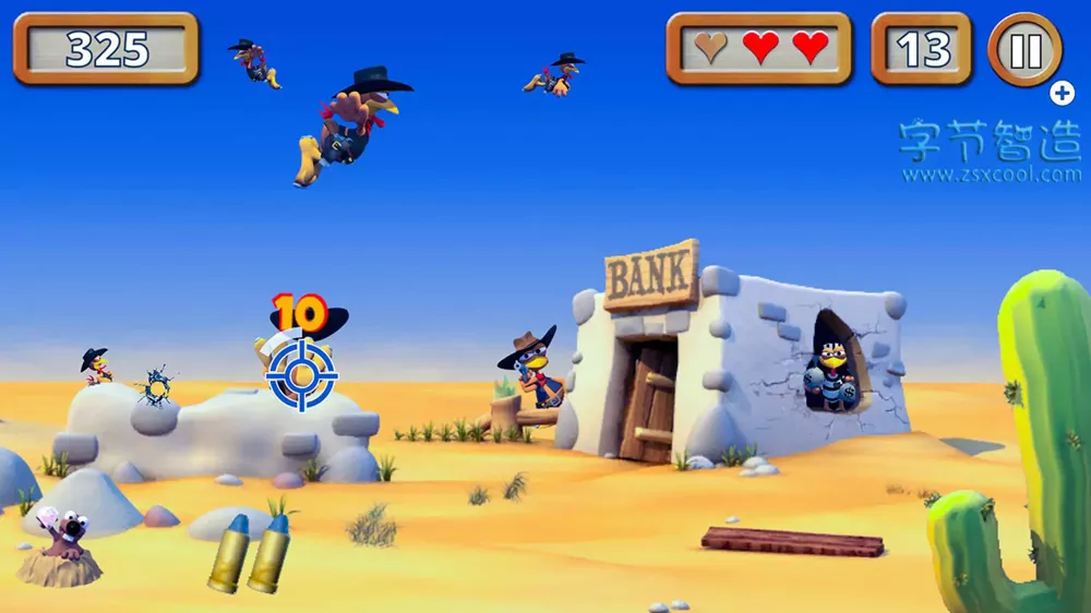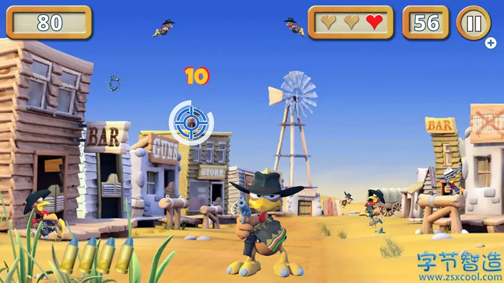 在三个关卡中,每个关卡的目标都是在 90 秒内尽可能多地猎杀小鸡并收集尽可能多的分数。