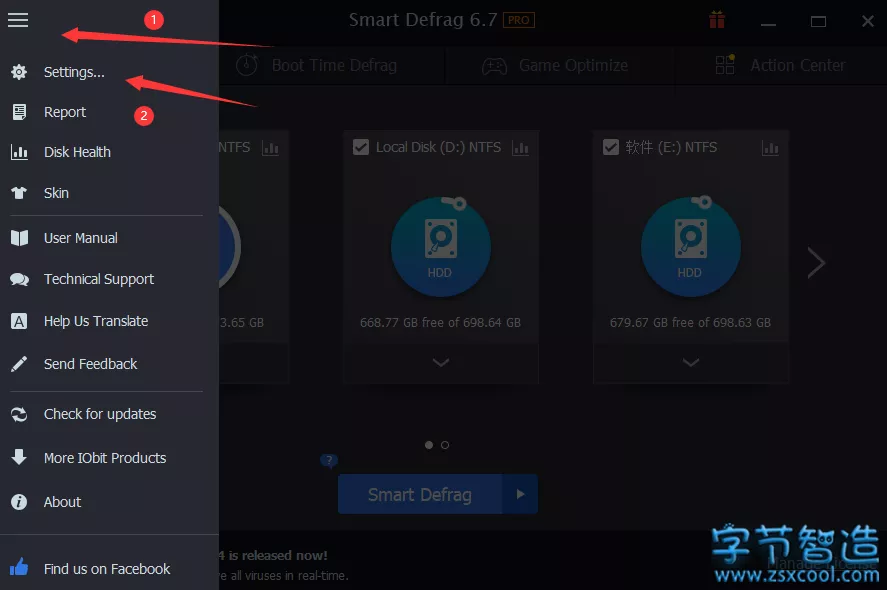 Smart Defrag v6.7 全功能无限制版初始设定是英文的,按照以下步骤设置语言: