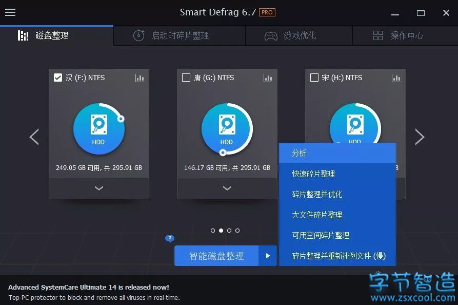 目前主流的硬盘主要以固态硬盘+大容量机械硬盘的模式,与其他“自动”碎片整理程序,Smart Defrag 不会重复不断地进行分析和碎片整理,因为这会损害您的硬盘驱动器和缩短其寿命。