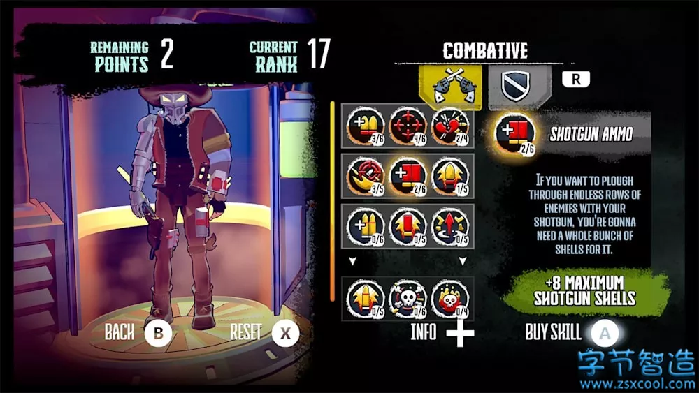 游戏中有 2000 支各具特色的左轮手枪、霰弹枪和步枪中等待玩家去解锁和选用。1600 种各不相同的补给品可以让你暂时扭转战局或强化你的战斗能力,游戏中还有数百个装满钱、武器和升级的战利品箱子等著你去打开。玩家可以用 24 种不同的技能升级你的枪手,打造个性十足的游戏玩法。