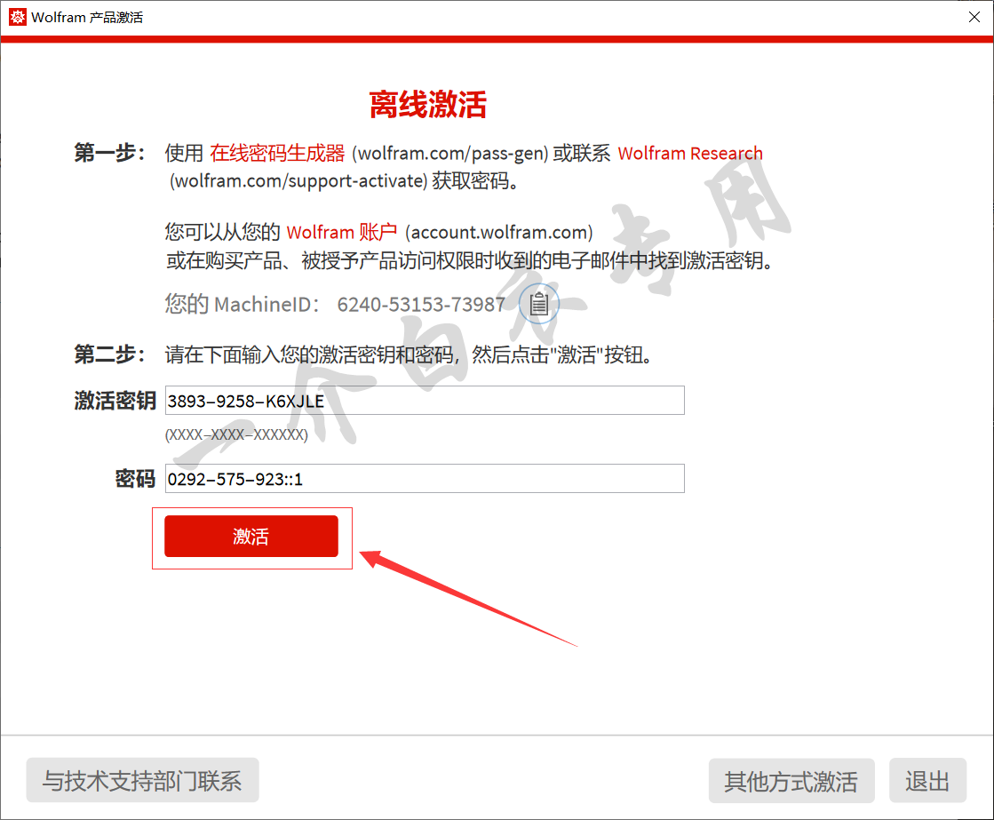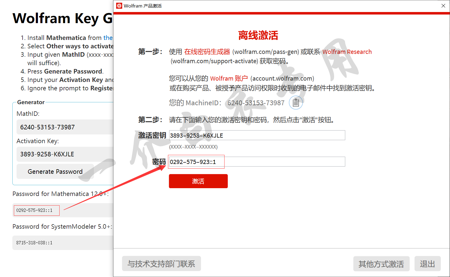 18.将生成的Password for Mathematica 12.0+的内容,粘贴到软件激活页面的【密码】文本框内