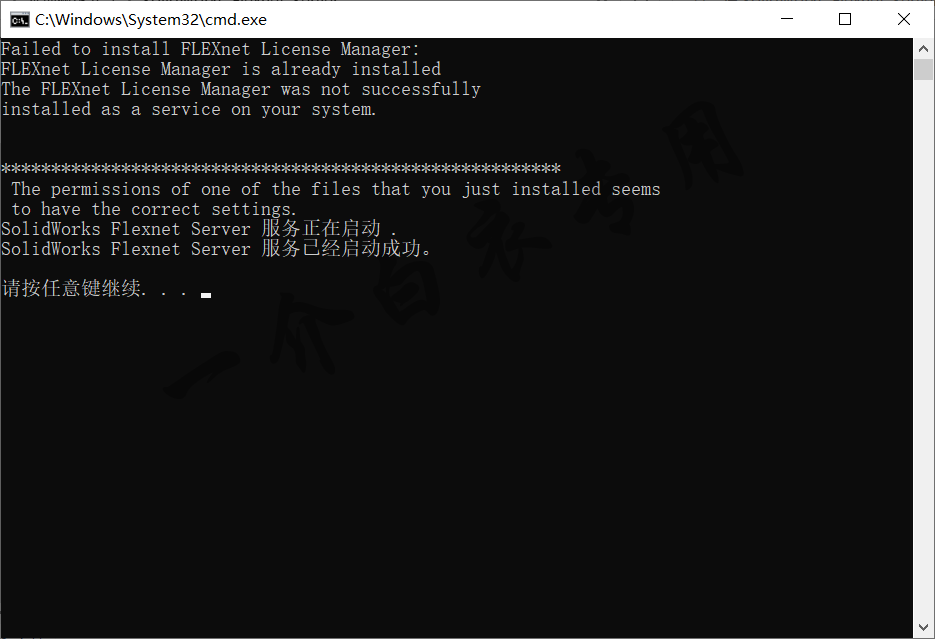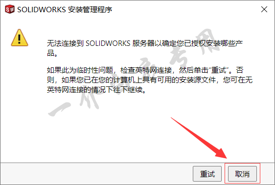 注意:在你重新启动电脑后,再次打开软件的时候,可能会出现【无法获得下列许可 SOLIDWORKS Standard】的错误提示。这时只需要重新执行一下安装步骤中的第9步即可。
