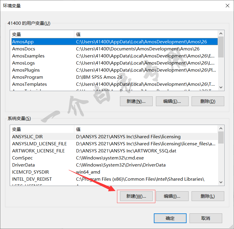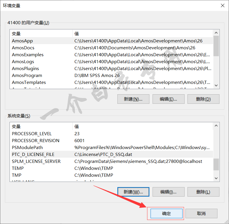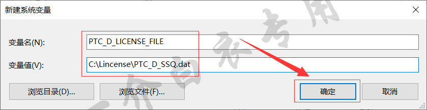 12.在变量名处输入【PTC_D_LICENSE_FILE】,变量值处输入【C:\Lincense\PTC_D_SSQ.dat】,然后点击【确定】