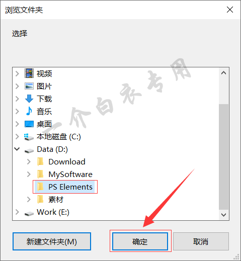 7.将文件夹名称修改为【PS Elements】,然后点击确定