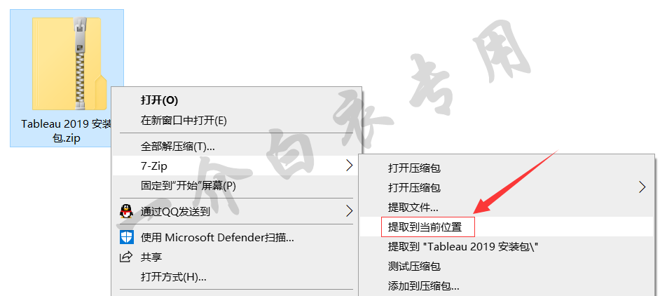1.找到下载好的安装包,并将其解压到当前位置
