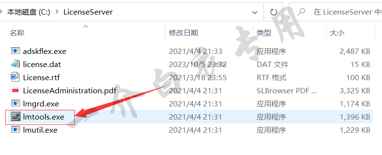 22.返回【LicenseServer】文件夹,双击打开【lmtools.exe】文件