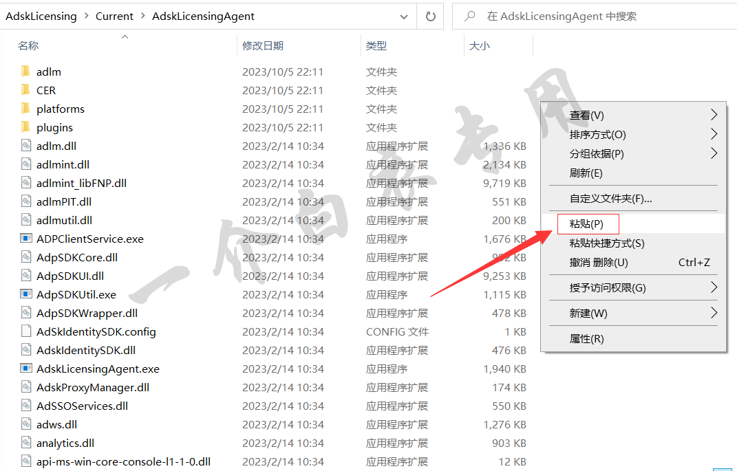 14.开路径【C:\Program Files (x86)\Common Files\Autodesk Shared\AdskLicensing\Current\AdskLicensingAgent】,在文件夹空白处点击右键,将上一步复制的文件,粘贴到此文件夹内