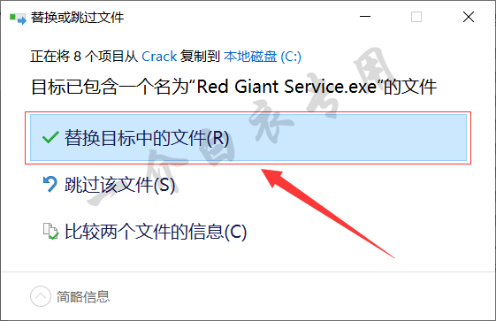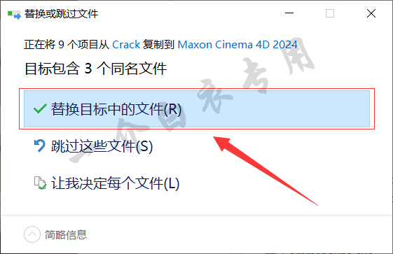 24.在弹出的窗口中,选择【替换目标中的文件】