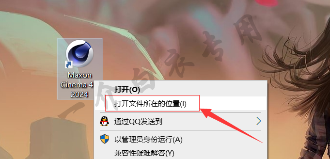 17.返回桌面,右键点击Maxon Cinema 4D 2024图标,选择【打开文件所在的位置】