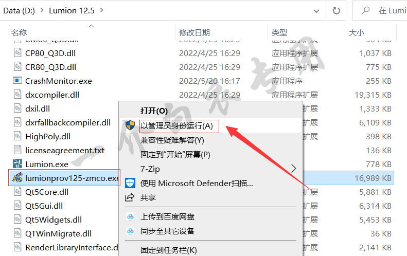 14.然后以管理员身份运行刚粘贴过来的【lumionprov125-zmco.exe】