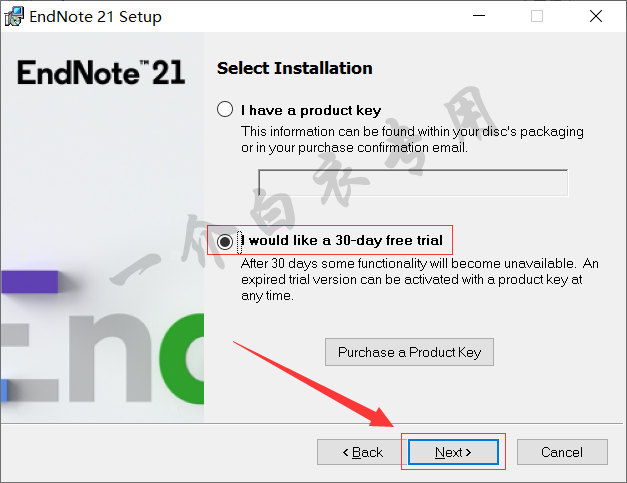 5.勾选【I would like a 30-day free trial】,然后点击【Next】