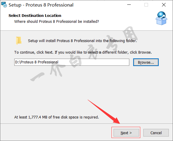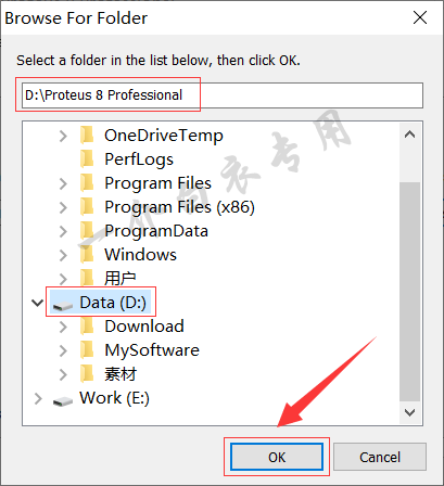 5.先选择D盘,软件会自动在D盘新建一个名称为【Proteus 8 Professional】文件夹,然后点击【OK】