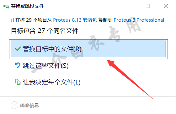 14.在弹出的窗口中选择【替换目标中的文件】