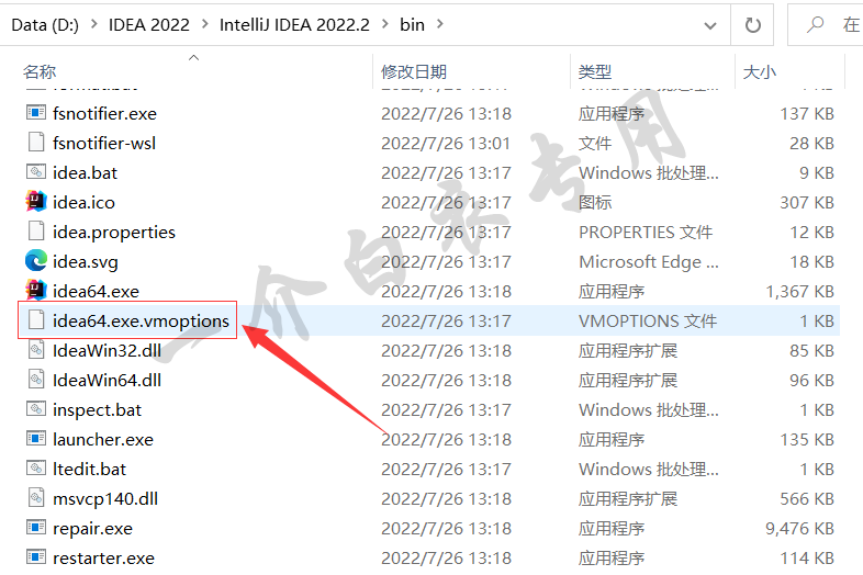 17.找到【idea64.exe.vmoptions】文件,以记事本的方式将其打开