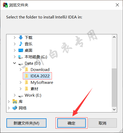 7.将新建的文件夹命名为【IDEA 2022】并选中,点击【确定】