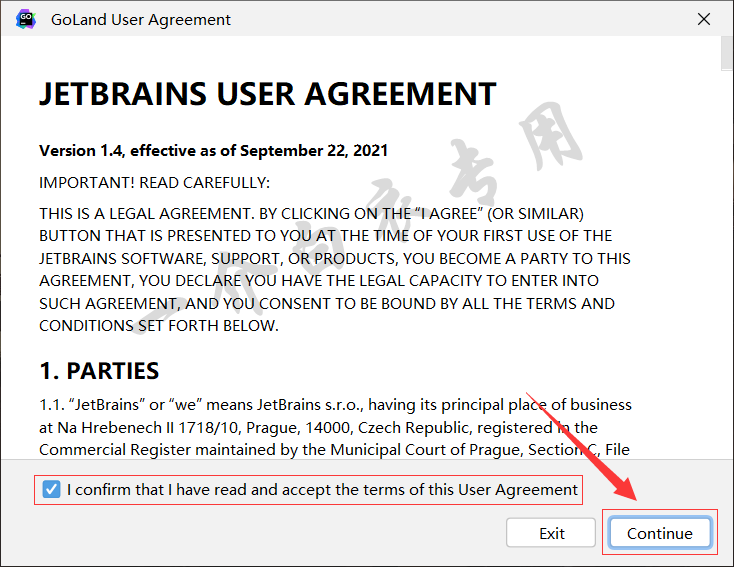 20.勾选【I confirm that ….. Agreement】,点击【Continue】