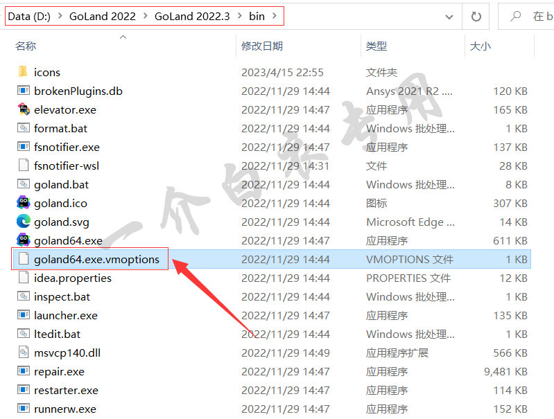 17.找到【goland64.exe.vmoptions】文件,以记事本的方式将其打开
