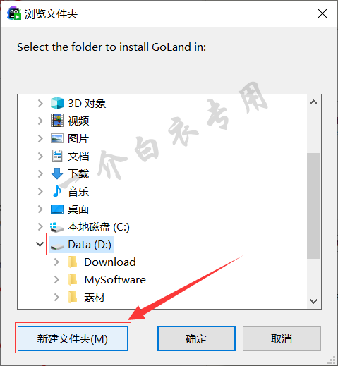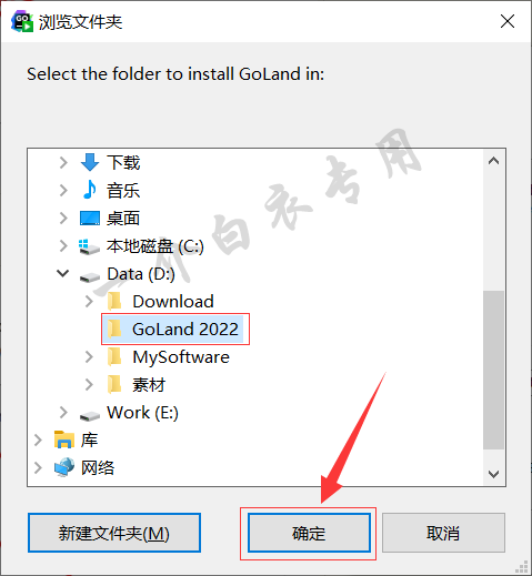 7.将新建的文件夹重命名为【GoLand 2022】并选中,点击【确定】
