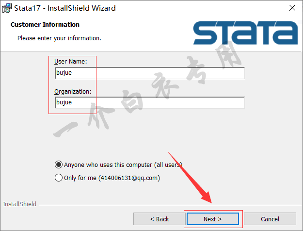 6.User Name和Organization随便填写就可以了,然后点击【Next】