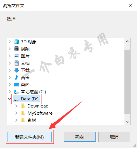 6.选择D盘,然后点击【新建文件夹】