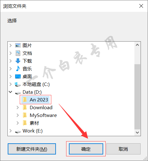 7.将新建的文件夹重命名为【An 2023】并选中,点击【确定】