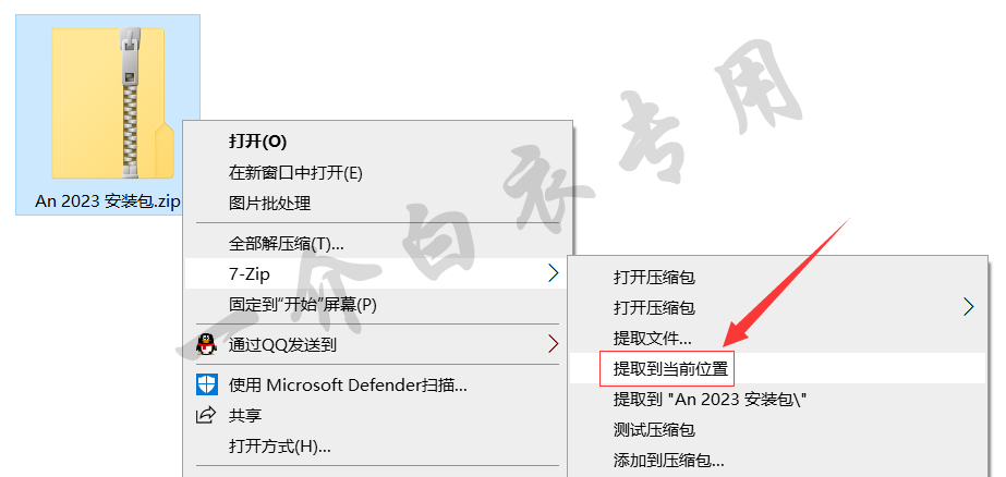 1.找到下载好的安装包,并将其解压到当前位置