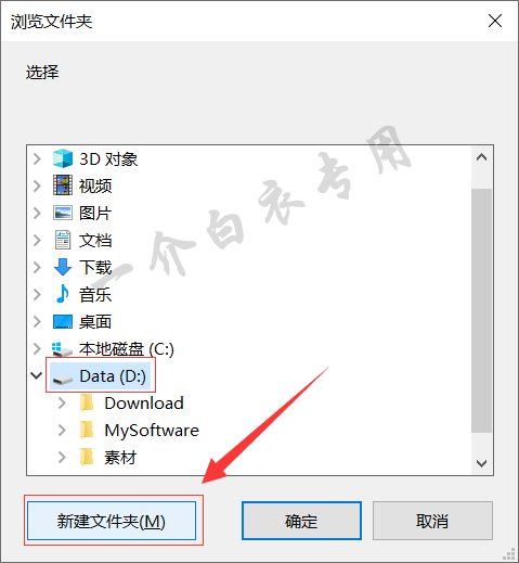 6.选择D盘,然后点击【新建文件夹】