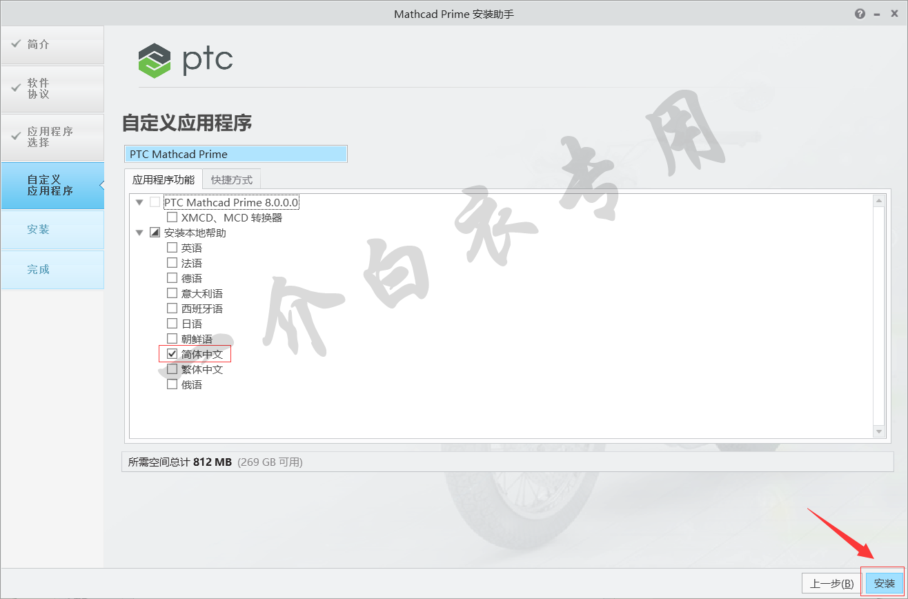 15.勾选自己需要的应用程序功能,然后点击【安装】