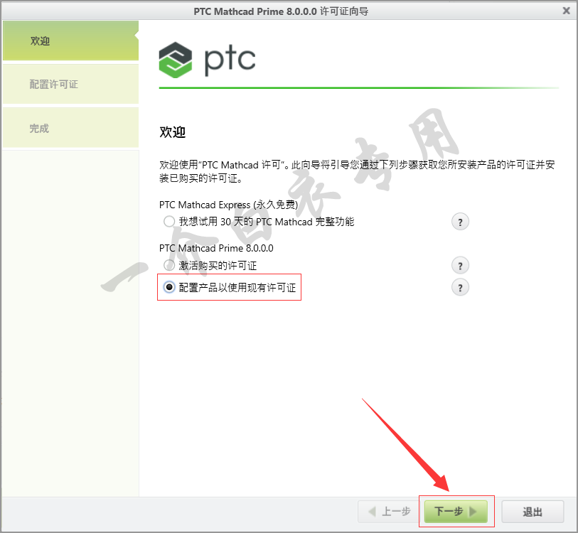23.勾选【配置产品以使用现有许可证】,然后点击【下一步】
