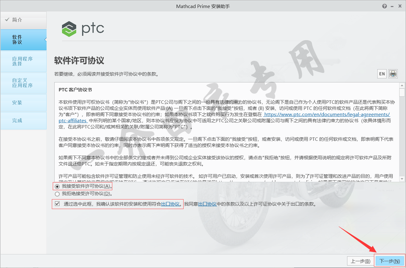 13.勾选【我接受软件许可协议】和【通过选中此框】,点击【下一步】