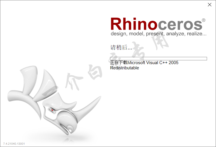 6.Rhinoceros7.4需要【Microsoft Visual C++2005-2019】支持库,如果电脑没有安装支持库,软件会自动下载安装,耐心等待即可,也可以自行下载安装