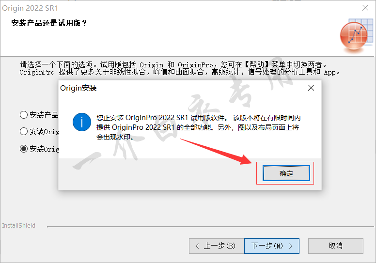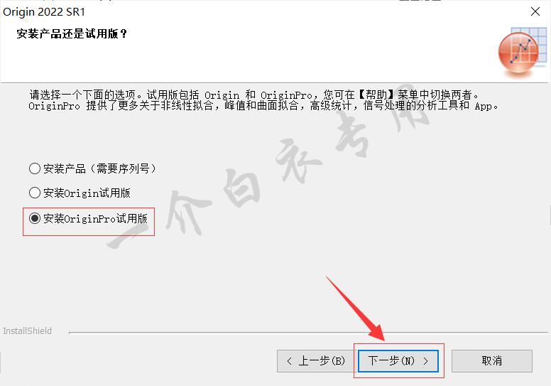 7.选择【安装OriginPro试用版】,然后点击【下一步】