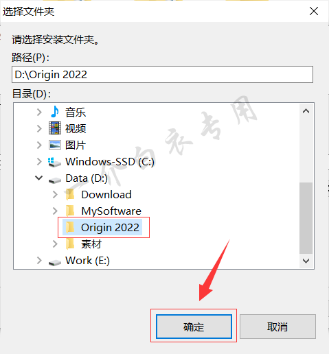 12.选择上一步新建的文件夹【Origin 2022】,然后点击【确定】