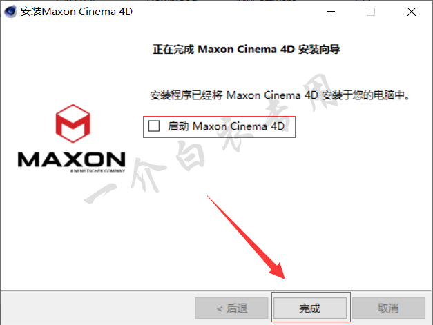 10.安装完成后,取消勾选【启动 Maxon Cinema 4D】,然后点击【完成】