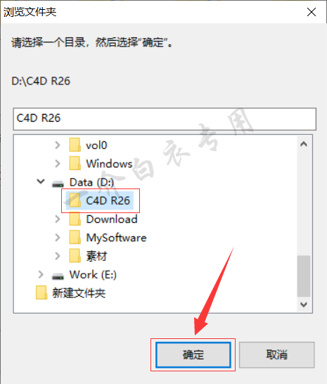 6.选择新建的文件夹【C4D R26】,然后点击【确定】