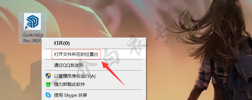 12.返回桌面,选中【SketchUp Pro 2022】图标并点击右键,选择【打开文件所在的位置】