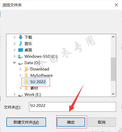 6.将文件夹重命名为【SU 2022】并选中,然后点击【确定】
