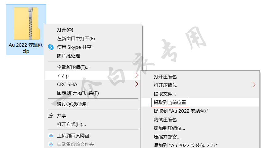 1.找到下载好的安装包,并将其解压到当前位置
