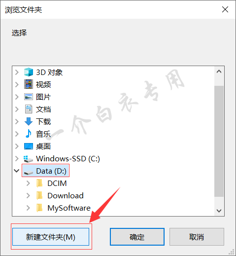 6.选择D盘,然后点击【新建文件夹】