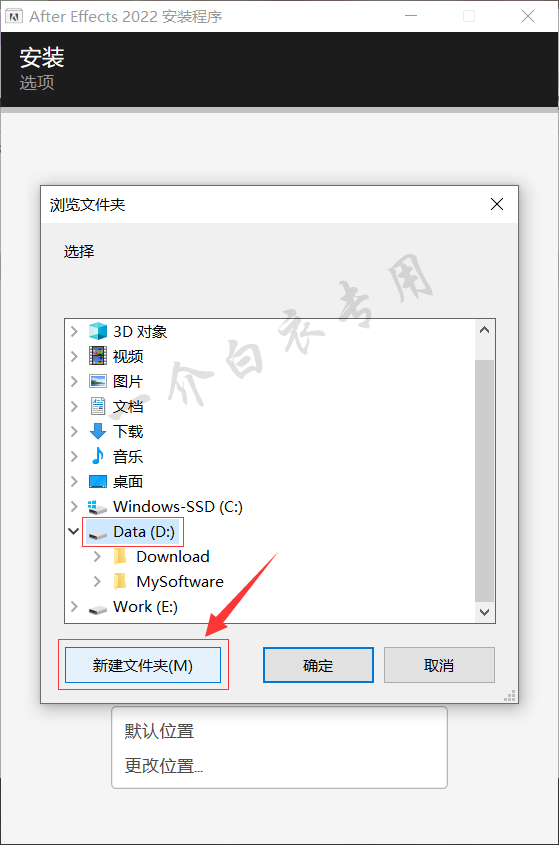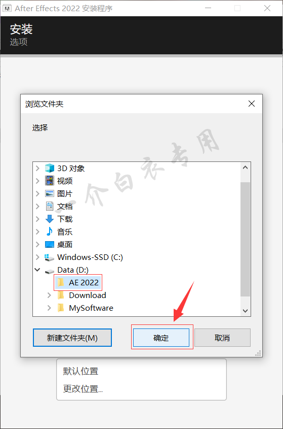7.将文件夹名称修改为【AE 2022】,然后点击确定