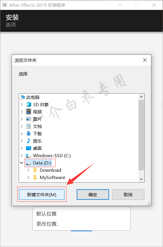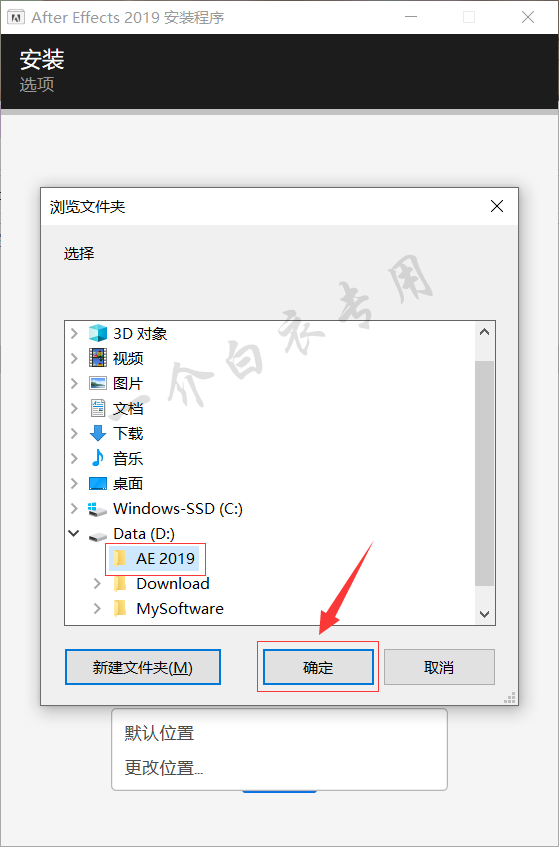 7.将文件夹名称修改为【AE 2019】,然后点击确定