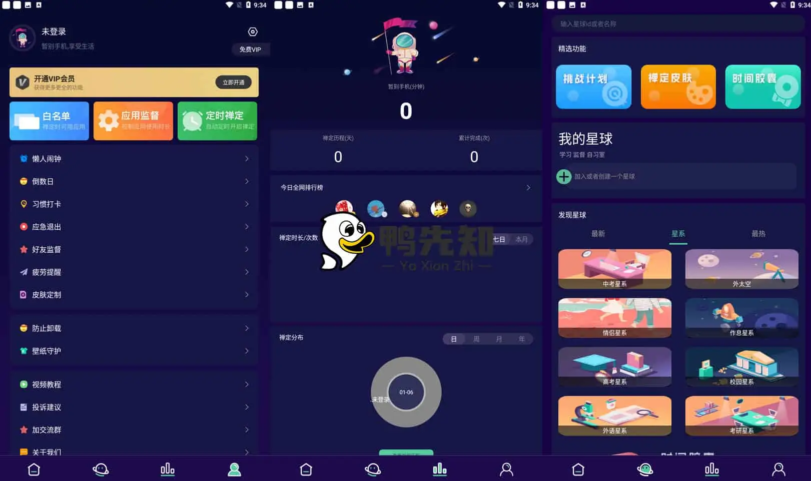 禅定空间,自动锁屏早睡习惯养成,一键锁屏不做手机控。功能包含:自动跳开屏广告、番茄钟、定时锁机、应用监管、应用限制、页面限制、禅定星球、时间胶囊、疲劳提醒、壁纸守护、挑战计划、数据统计。