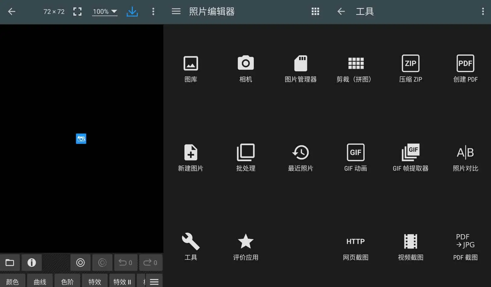 一款照片编辑工具,能把体积做到5M左右,并且常用的功能一个不漏,比起那些P图软件几十m的体积真是轻巧!Photo Editor为您的照片提供了各种各样的效果, 包括伽玛校正, 自动对比度, 自动色阶, 模糊,锐化, 油性涂料, 素描, 黑 & 白高对比度, 深棕, 还会有更多。