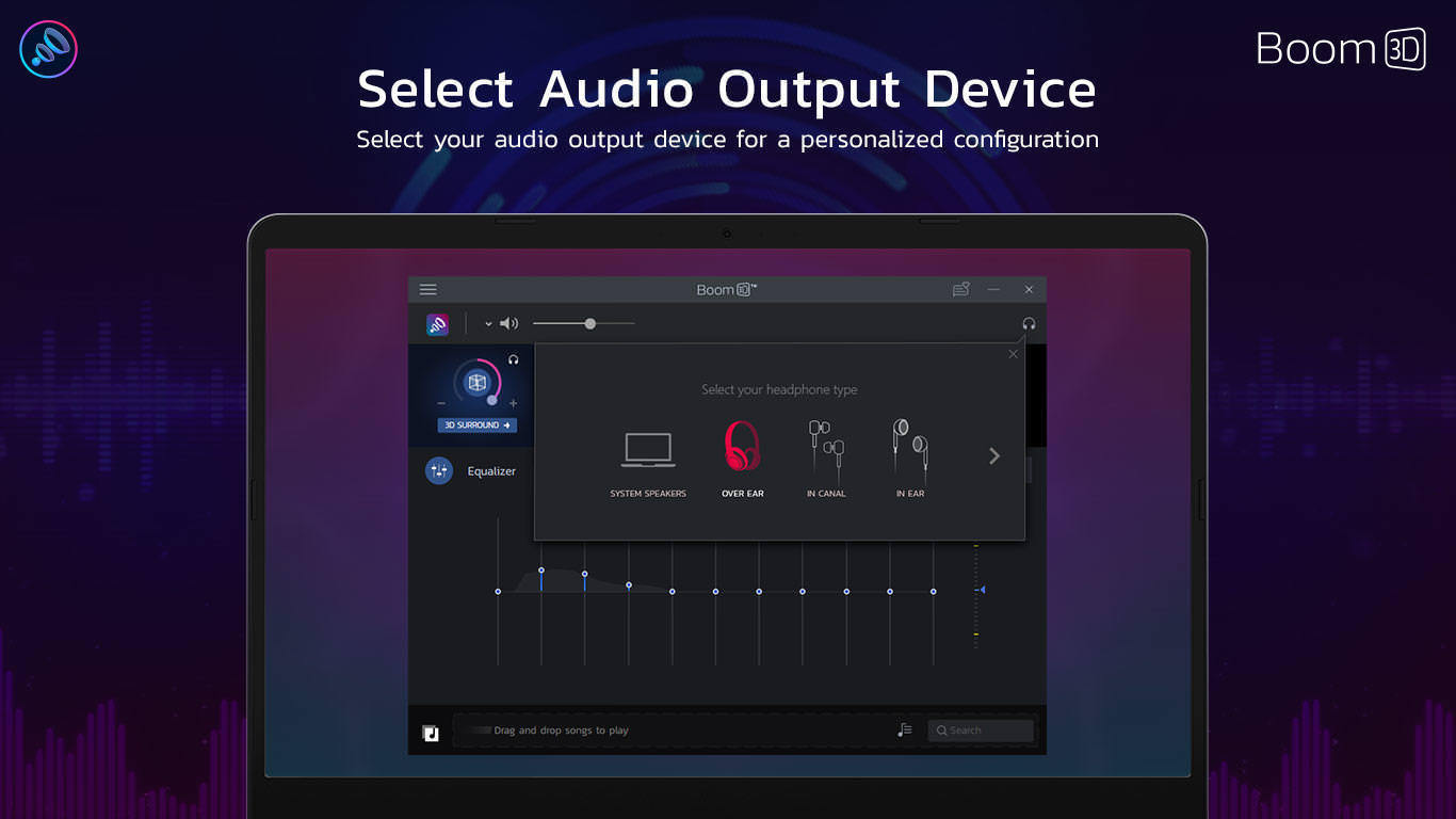 - 选择您的耳机类型,以便Boom 3D能够适当地提供一个声音最好的输出。