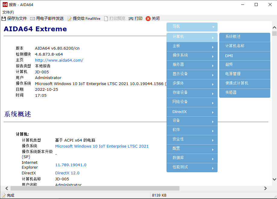 全球第一(No.1)的硬件识别诊断神器AIDA64 Extreme是业界领先的系统信息工具,深受全球PC爱好者的喜爱,它不仅提供有关硬件和已安装软件的极其详细的信息,还可以帮助用户诊断问题并提供衡量计算机性能的基准。AIDA64中文版是一款硬件检测工具及基准测试软件(烤机软件), 它提供有关已安装软件的详细信息,并提供诊断功能和超频支持。 由于它实时监控传感器,因此可以收集准确的电压、温度和风扇速度读数,而其诊断功能有助于检测和防止硬件问题。 它还提供了一些基准来测量单个硬件组件或整个系统的性能。 它与所有 32 位和 64 位 Windows 版本兼容,包括 Windows 11 和 Windows Server 2022。